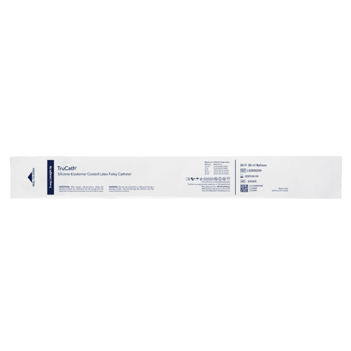 TruCath® 3-Way Foley Catheter, 20 Fr, Silicone Catheter Material, 30 cc Balloon Size, Standard Tip, Contains Latex, 16 in Length, Silicone Elastomer-Coated Coating, Sterile, HCPCS Code: A4338