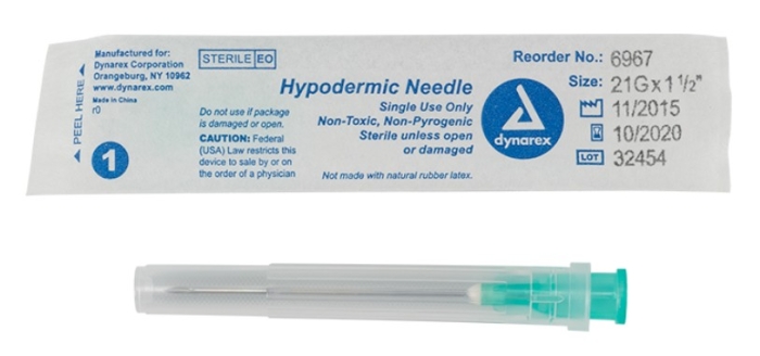 Dynarex Hypodermic Needles are sterile, thin-walled needles designed to provide safe, effective blood draws and medication administration. Each needle features a double-bevel tip to support smooth penetration, efficient delivery, and improved patient comfort. A color-coded hub allows for quick identification of needle gauge, while compatibility with both luer lock and luer slip connections provides versatile attachments options.