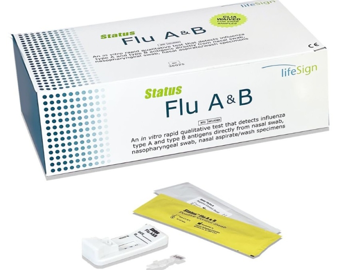 The LifeSign Status Flu A & B Test Kit is used by healthcare professionals to provide an easy and convenient point-of-care testing of Influenza A or B virus in a symptomatic patient. Meets the new FDA reclassification criteria and CLIA-waived, specimen needed for testing can be collected directly through anterior nasal or nasopharyngeal swabbing. Accurate and fast results will be shown on the test device in as fast as 10-15 minutes and promotes efficiency and precision allowing proper differentiation of Flu A and B infection.