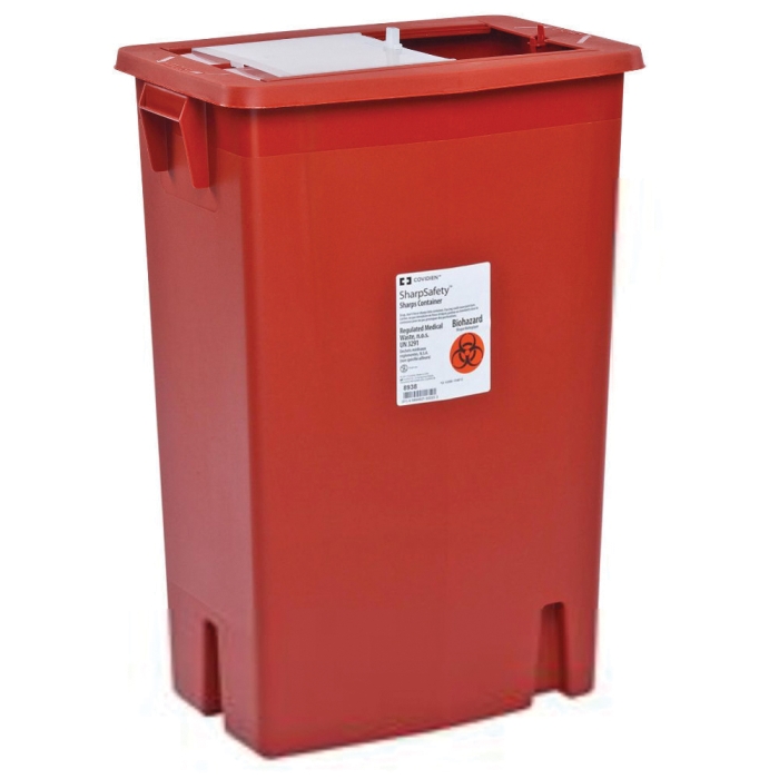 Large volume sharps containers are designed to accommodate sharps of all sizes. Cardinal Health offers a variety of different sizes and lid designs to meet all of your various sharps disposal needs. Our large volume sizes range from 8 gal to 30 gal and are available with sealing gaskets.