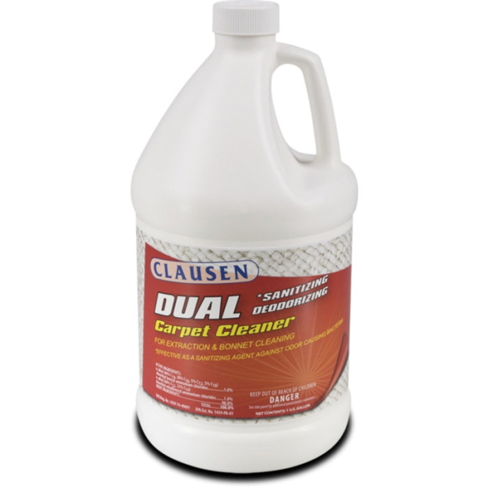 Clausen Carpet Solutions Dual Carpet Cleaner, Amber, 1 gal Net Content, Liquid Form, Pleasant Odor/Scent, Composition: n-Alkyl Dimethyl Benzyl Ammonium Chlorides 1%, n-Alkyl (50% C-12, 30% C14, 17% C16, 3% C16) Dimethyl Ethylbenzyl Ammonium Chlorides 1%, Sodium Metasilicate 1.5%, Linear Alcohol Ethoxylates 1.5%, Soda Ash 1.5%, Tetrasodium Pyrophosphate 1.5%, 12.5 pH pH