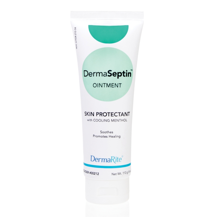 DermaSeptin Ointment with zinc oxide and calamine provides a barrier to prevent irritation from moisture and to promote healing. Also contains menthol to help soothe minor skin irritation and dry/manage weeping skin.