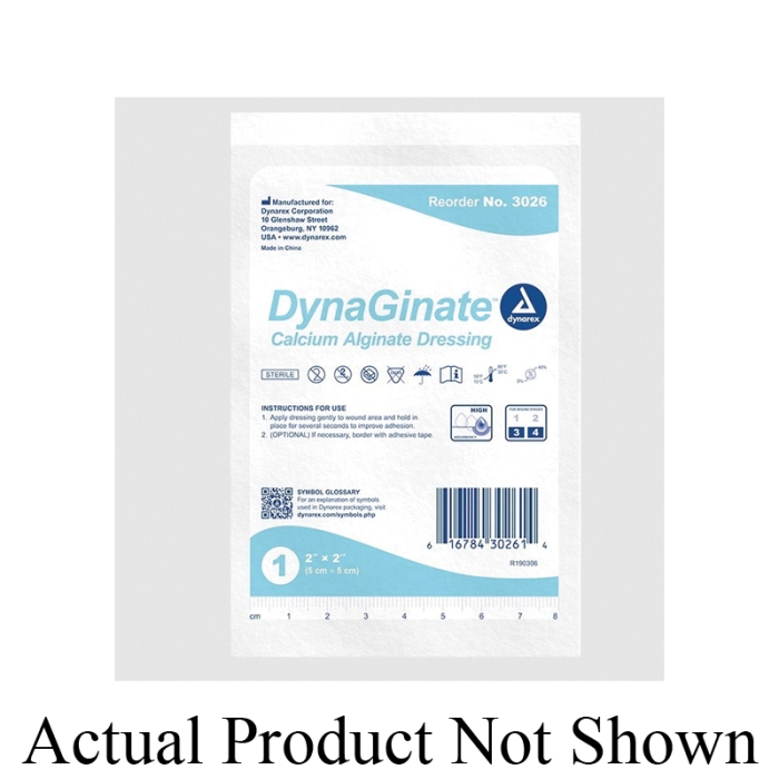 dynarex DynaGinate™ Dressing, Calcium Alginate, Primary or Secondary Dressing: Primary, 4 in Length, 8 in Width, Sterile, Square Shape, White, Latex-Free, HCPCS Code: A6196, High Absorbency
