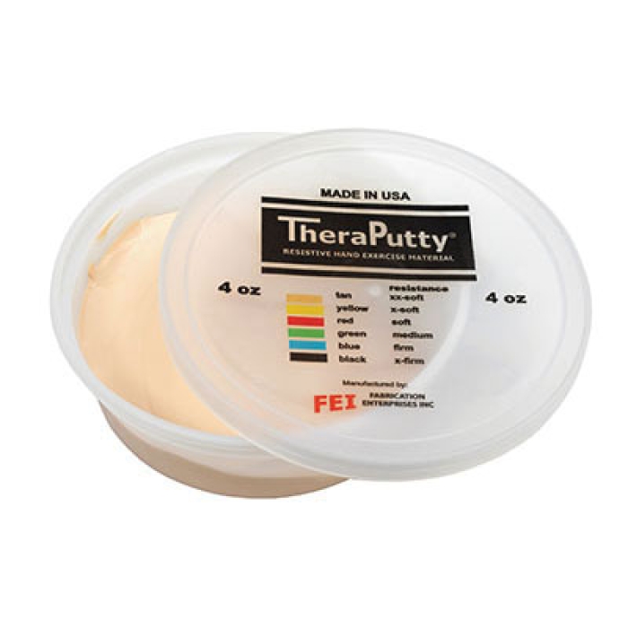 CanDo® Theraputty exercise putty is the standard in resistive hand exercise material. Theraputty is the name trusted by more doctors, therapists, hospitals and clinics than any other to strengthen hand muscles and grip, improve fine motor skills and decrease stress. With each squeeze, pinch, stretch, grip and/or twist, Theraputty puts you on the path to healthier hands and fingers, improves fine motor skills and decreases stress. Each of the six color-coded putties features industry standard resistances, with a progressive firmness ranging from xx-soft to x-firm. The convenient size and easy-to-open containers enable users to compliment the work done at the clinic or hospital, allowing strength and mobility progress to continue at home. This is a 4 oz container of the yellow theraputty x-soft. With six resistance levels, options to make exercises more challenging include using a higher level resistance putty, a larger quantity or increasing the number of repetitions. An illustrated guide featuring nearly a dozen exercises is available for free on our website. Accessories that stimulate functional activity, such as Puttycise Tools, are available separately. The putty is gluten, latex and casein-free. Safe for all, CanDo® theraputty is non-toxic if swallowed and will not dry out.