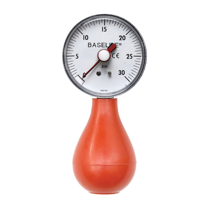 The baseline squeeze (bulb) dynamometer with 30 psi gauge and max force indicator (reset) that remains at the maximum reading until reset is the inexpensive way to reliably measure hand and finger strength. Unit is calibrated in PSI (pounds-per-square in).