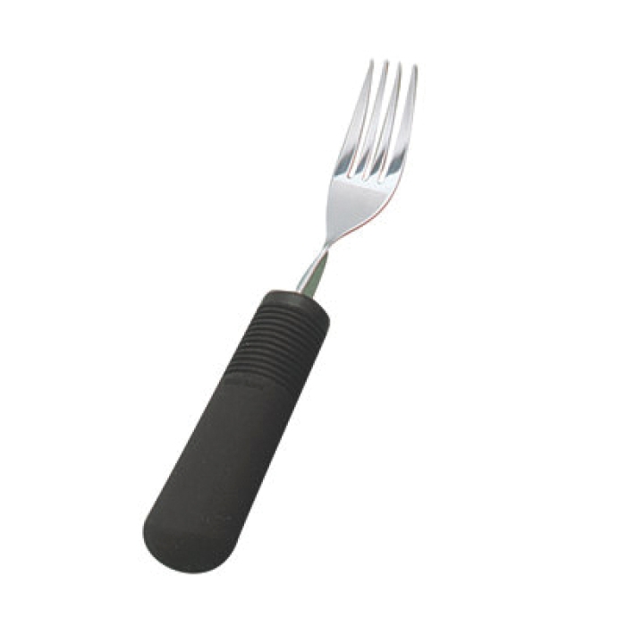 Good Grips utensil handles are easy to hold. Forks and spoons have twist in the shaft to allow bending at any angle. Sample kit includes a fork, small spoon, teaspoon, tablespoon and rocker knife. Institutional dishwasher safe.