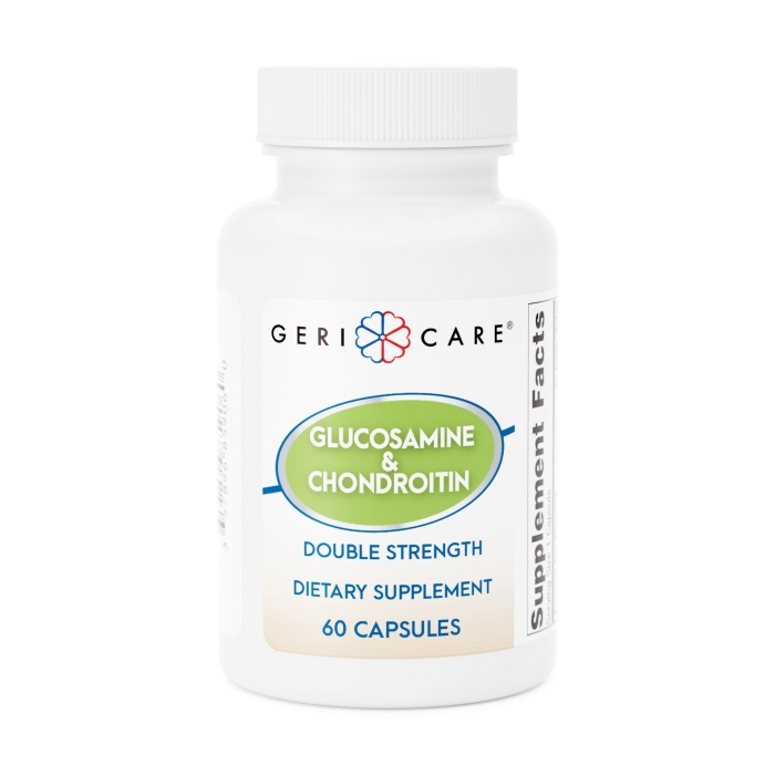 GERI-CARE Glucosamine and Chondroitin Dietary Supplement, 60 CT Net Content, Bottle Container, Tablet Form, Ingredients: Sodium 28 mg, Glucosamine HCl 500 mg, Chondroitin Sulfate 400 mg, Directions: Adults: one capsule, three times daily