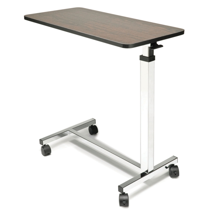 graham-field™ H Base Economy Overbed Table, Weight Capacity: 30 lb, Tabletop Type: Non-Tilt, Woodgrain Laminated Tabletop, Locking, Non-Locking, Swivel, Twin Wheel Caster, 30 in W, 15 in D, 28 to 44 in H, 26.2 in W Base, 15-1/4 in D Base, Chrome-Plated, HCPCS Code: E0274