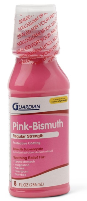 Guardian Drug Company Gastro Bismuth Regular Strength, 8 oz Net Content, Bottle Container, Liquid Form, Original Flavor, Active Ingredients: Bismuth Subsalicylate 525 mg