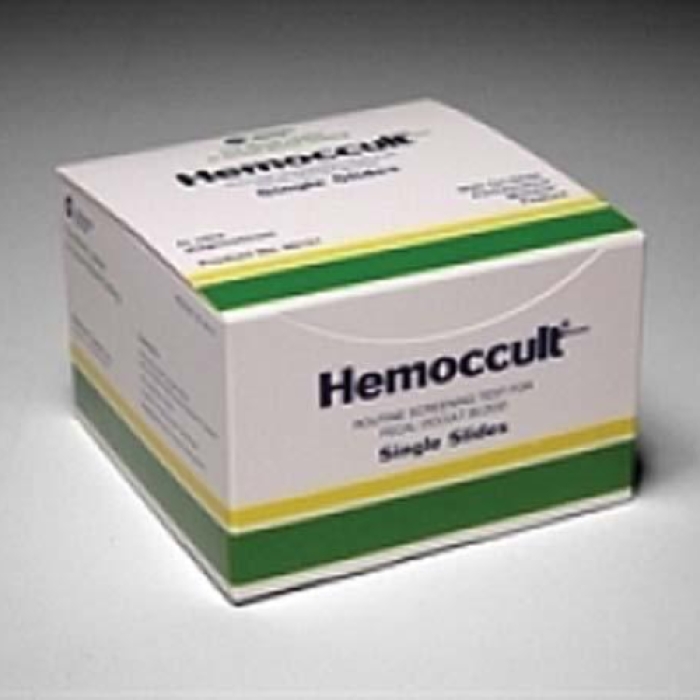 Hemoccult® Single Slides are convenient for use when single fecal specimens are collected for routine in-office gastrointestinal screening.Box contains: 100 Hemoccult® Single Slides (test cards), two 15 mL bottles of Hemoccult® Developer, 100 applicator sticks.