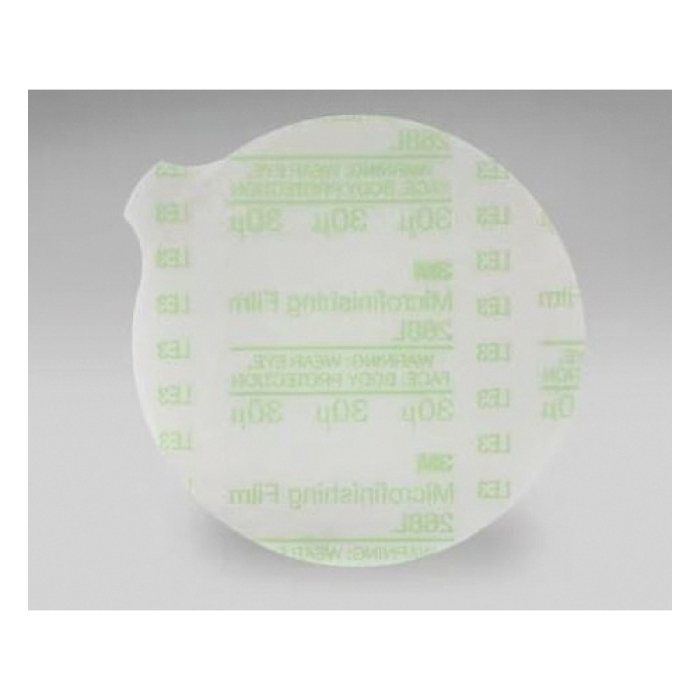 Hookit™ Micro-Finishing Film Disc, 6 in Dia, 9 Micron Grade Grit, Aluminum Oxide Abrasive, Polyester Backing, 3 mil Backing Weight, Vacuum Bond, Light Blue, 6 Holes