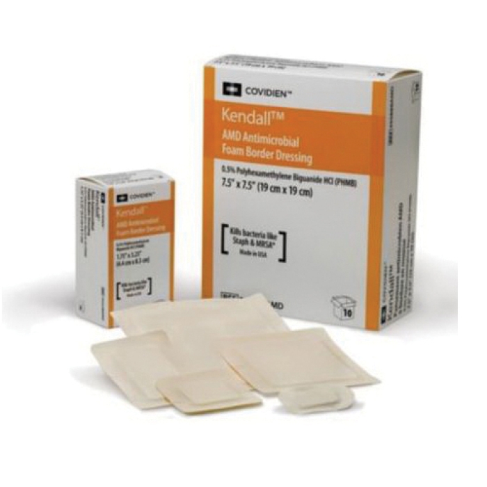 The powerful protection of Kendall™ AMD antimicrobial foam dressings are also available in foam discs which are effective for up to 7 days. The PHMB impregnated foam discs help to provide a barrier of protection for catheter insertion sites such central venous catheters (CVC) and peripherally inserted central catheters (PICCs). The Kendall™ AMD antimicrobial foam discs are also ideal for use around external fixation devices.