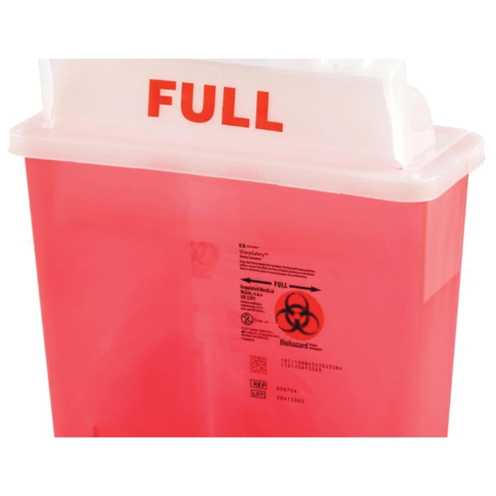 Monoject™ SharpStar™ In-Room Sharps Container, 5 qt Capacity, Transparent Red, 10-3/4 in Width, 12-1/2 in Height, 5-1/2 in Depth