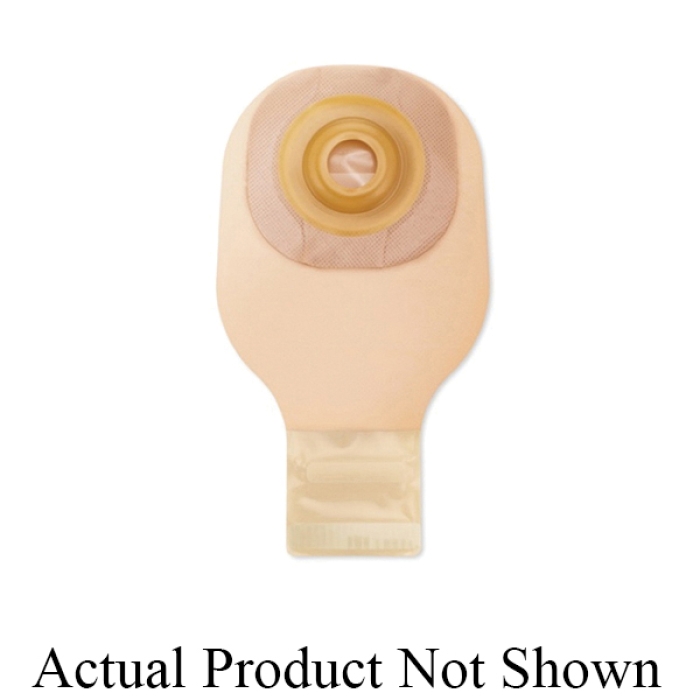 A one-piece, drainable pouching system designed to be opened at the bottom when emptying. These pouches are most suitable for colostomies or ileostomies. The FlexTend™ barrier is an extended wear skin barrier that is durable and offers high resistance to erosion. The viewing option allows the stoma and output to be observed clearly when the flap is lifted. The Lock'n Roll™ microseal closure utilizes plastic interlocking fasteners to create a secure closure at the bottom of the pouch. The AF300™ filter allows for slow release and deodorization of gas from the pouch. Soft, beige ComfortWear™ pouch panels help provide comfort.