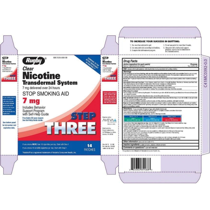 Rugby® Nicotine, Patch, 7 mg, 14 CT, Storage Temperature: 68 to 77 deg F, Directions: If you are under 18 years of age, ask a doctor before use before using this product, read the enclosed self-help guide for complete directions and other information stop smoking completely when you begin using the patch. Apply one new patch every 24 hr on skin that is dry, clean and hairless. Remove backing from patch and immediately press onto skin. Hold for 10 s. Wash hands after applying or removing patch. Save pouch to use for patch disposal. Dispose of used patch by folding sticky ends together and putting in pouch. The used patch should be removed and a new one applied to a different skin site at the same time each day. If you have vivid dreams, you may remove the patch at bedtime and apply a new one in the morning. Do not wear more than one patch at a time. Do not cut patch in half or into smaller pieces. Do not leave patch on for more than 24 hr because it may irritate your skin and loses strength after 24 hr. Stop using the patch at the end of 8 week. If you still feel the need to use the patch talk to your doctor, Warning: If you are pregnant or breastfeeding, only use this medicine on the advice of your health care provider. Smoking can seriously harm your child. Try to stop smoking without using any nicotine replacement medicine. This medicine is believed to be safer than smoking. However, the risks to your child from this medicine are not fully known. Do not use If you continue to smoke, chew tobacco, use snuff, use nicotine gum or use nicotine patch or other nicotine-containing products. Ask a doctor before use if you have heart disease, recent heart attack or irregular heartbeat. Nicotine can increase your heart rate. High blood pressure not controlled with medication. Nicotine can increase your blood pressure. An allergy to adhesive tape or skin problems because you are more likely to get rashes. Ask a doctor or pharmacist before use if you are using a non-nicotine stop smoking drug. Taking a prescription medicine for depression or asthma. Your prescription dose may need to be adjusted. When using this product do not smoke even when not wearing the patch. The nicotine in your skin will still be entering your bloodstream for several hours after you take off the patch. If you have vivid dreams or other sleep disturbances, remove this patch at bedtime. Stop use and ask a doctor if skin redness caused by the patch does not go away after four days or your skin swells or you get a rash Irregular heartbeat or palpitations occur. You get symptoms of nicotine overdose, such as nausea, vomiting, dizziness, weakness and rapid heartbeat keep out of reach of children and pets. Used patches have enough nicotine to poison children and pets. If swallowed, get medical help or contact a Poison Control Center right away. Save pouch to use for patch disposal. Dispose of used patch by folding sticky ends together and putting in pouch