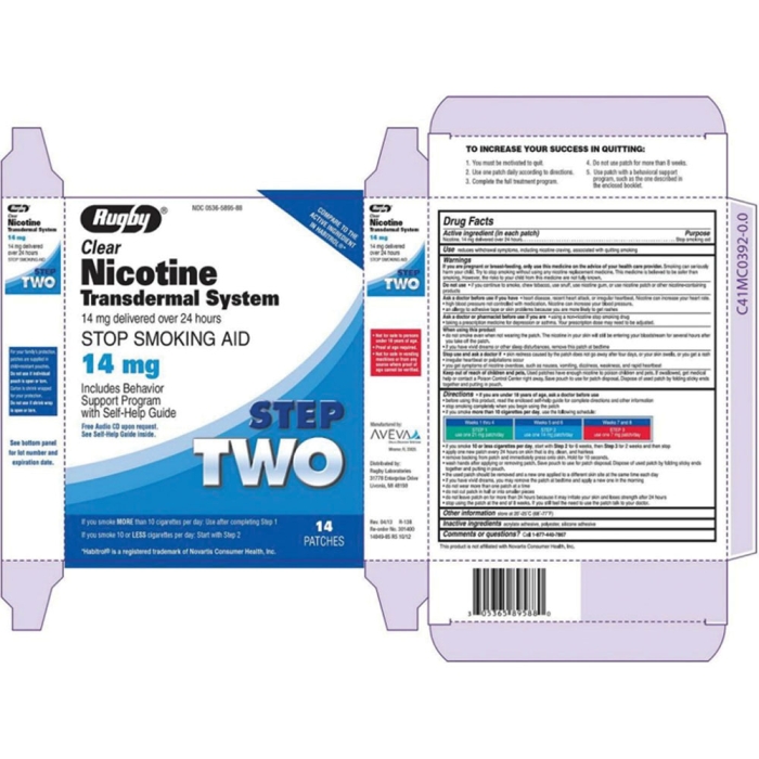 Rugby® Nicotine, Patch, 14 mg, 14 CT, Storage Temperature: 68 to 77 deg F, Directions: If you are under 18 years of age, ask a doctor before use before using this product, read the enclosed self-help guide for complete directions and other information stop smoking completely when you begin using the patch. Apply one new patch every 24 hr on skin that is dry, clean and hairless. Remove backing from patch and immediately press onto skin. Hold for 10 s. Wash hands after applying or removing patch. Save pouch to use for patch disposal. Dispose of used patch by folding sticky ends together and putting in pouch. The used patch should be removed and a new one applied to a different skin site at the same time each day. If you have vivid dreams, you may remove the patch at bedtime and apply a new one in the morning. Do not wear more than one patch at a time. Do not cut patch in half or into smaller pieces. Do not leave patch on for more than 24 hr because it may irritate your skin and loses strength after 24 hr. Stop using the patch at the end of 8 week. If you still feel the need to use the patch talk to your doctor, Warning: If you are pregnant or breastfeeding, only use this medicine on the advice of your health care provider. Smoking can seriously harm your child. Try to stop smoking without using any nicotine replacement medicine. This medicine is believed to be safer than smoking. However, the risks to your child from this medicine are not fully known. Do not use If you continue to smoke, chew tobacco, use snuff, use nicotine gum or use nicotine patch or other nicotine-containing products. Ask a doctor before use if you have heart disease, recent heart attack or irregular heartbeat. Nicotine can increase your heart rate. High blood pressure not controlled with medication. Nicotine can increase your blood pressure. An allergy to adhesive tape or skin problems because you are more likely to get rashes. Ask a doctor or pharmacist before use if you are using a non-nicotine stop smoking drug. Taking a prescription medicine for depression or asthma. Your prescription dose may need to be adjusted. When using this product do not smoke even when not wearing the patch. The nicotine in your skin will still be entering your bloodstream for several hours after you take off the patch. If you have vivid dreams or other sleep disturbances, remove this patch at bedtime. Stop use and ask a doctor if skin redness caused by the patch does not go away after four days or your skin swells or you get a rash Irregular heartbeat or palpitations occur. You get symptoms of nicotine overdose, such as nausea, vomiting, dizziness, weakness and rapid heartbeat keep out of reach of children and pets. Used patches have enough nicotine to poison children and pets. If swallowed, get medical help or contact a Poison Control Center right away. Save pouch to use for patch disposal. Dispose of used patch by folding sticky ends together and putting in pouch