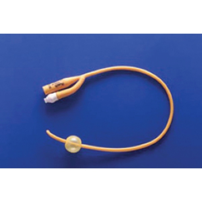 Rusch® Gold 2-Way Puregold Tiemann Foley Catheter, Coude Tip, Size: 18 Fr, Latex, Gold, 16 in L, Sterile/Non-Sterile: Sterile, Latex-Free/Contains Latex: Contains Latex, 5 to 15 mL Balloon Capacity, PTFE-Coated