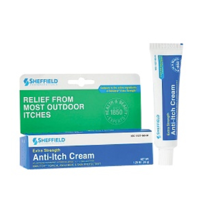 SHEFFIELD® Anti-Itch Allergy Cream, 1.25 oz Net Content, Tube Container, Cream Form, Ingredients: Diphenhydramine Cream 2%, Latex-Free/Contains Latex: Latex-Free